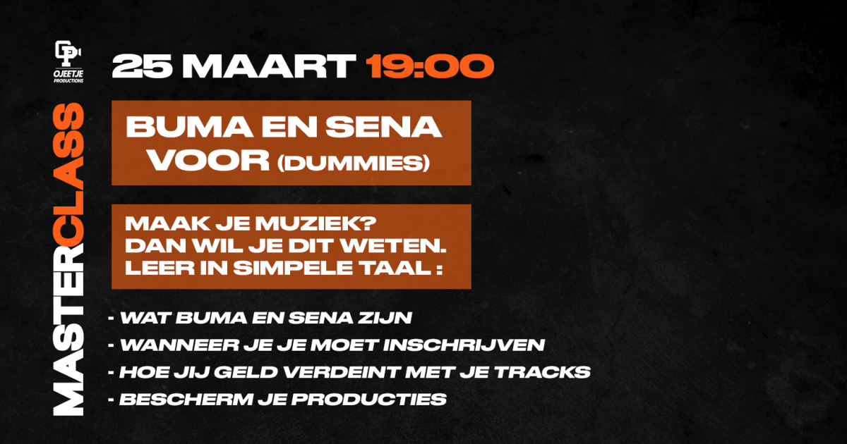 Maak jij muziek? Dan is dit essentiële kennis. Veel artiesten en producers laten geld liggen omdat ze niet weten hoe hun rechten werken. Tijdens deze sessie leggen we stap voor stap uit wat Buma en Sena precies doen en waarom jij dit nú moet regelen.